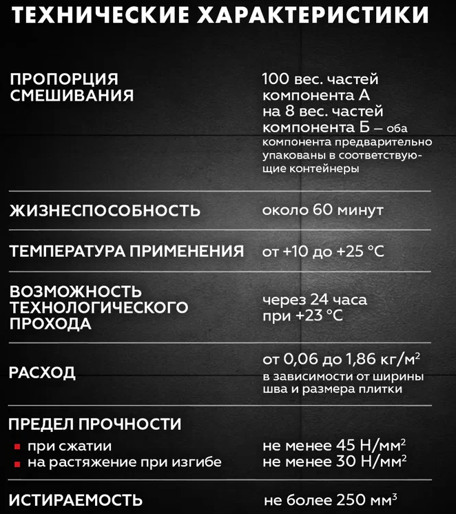 • Двухкомпонентный состав гарантирует максимальную прочность и долговечность шва.