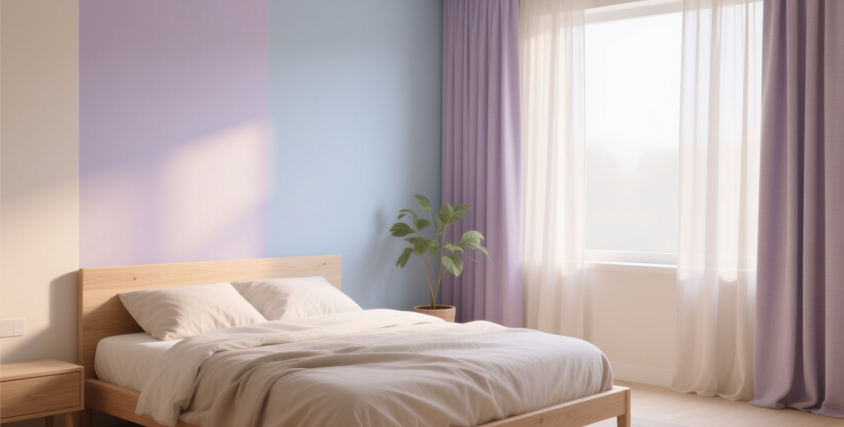 Цветовая гамма должна быть спокойной: пастельные, бежевые, лавандовые или голубые тона. Яркие и контрастные цвета негативно влияют на качество сна.