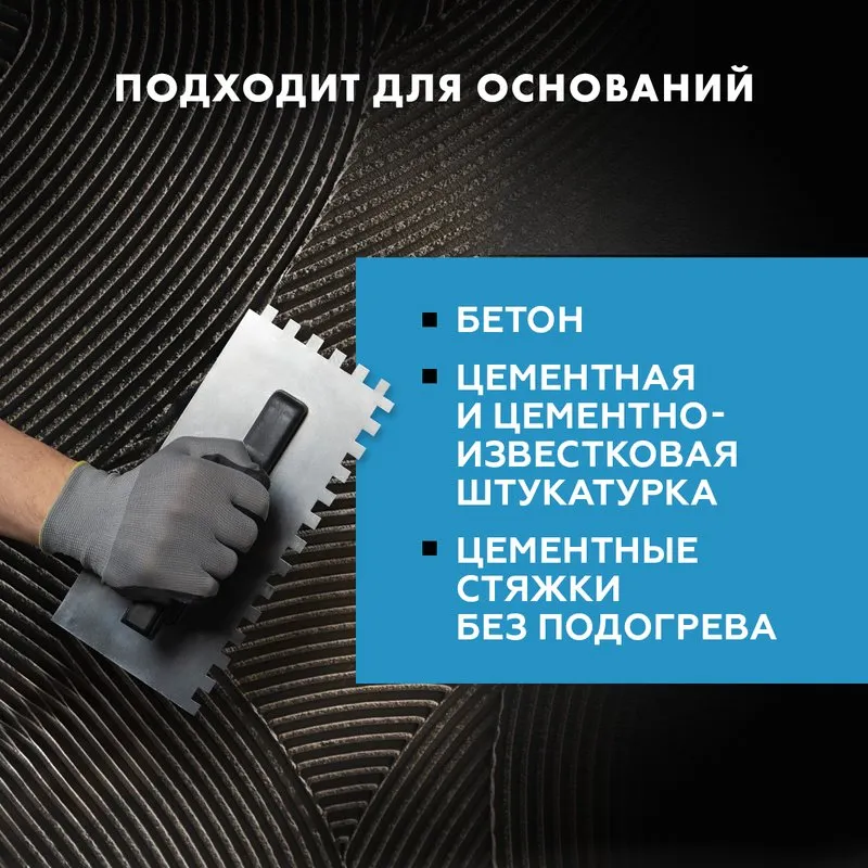 Данный клеевой состав предназначен для керамической плитки размером до 30x30 см.