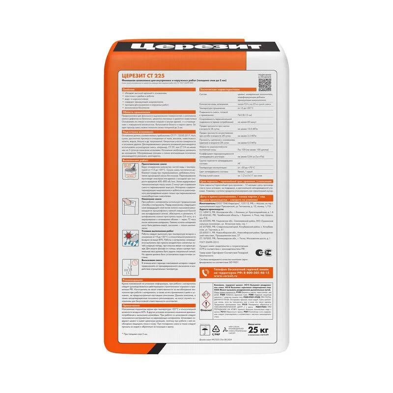 Благодаря своей пластичной текстуре, Церезит CT 225 легко наносится и равномерно распределяется. Это позволяет добиться идеально гладкой поверхности даже при отсутствии значительного опыта в строительных работах.