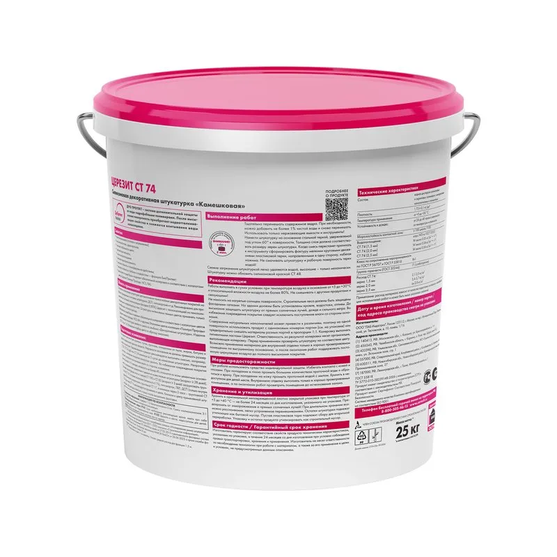 Церезит CТ 74 Силиконовая декоративная штукатурка «камешковая», зерно 1,5 / 2,0 / 2,5 мм, 25 кг