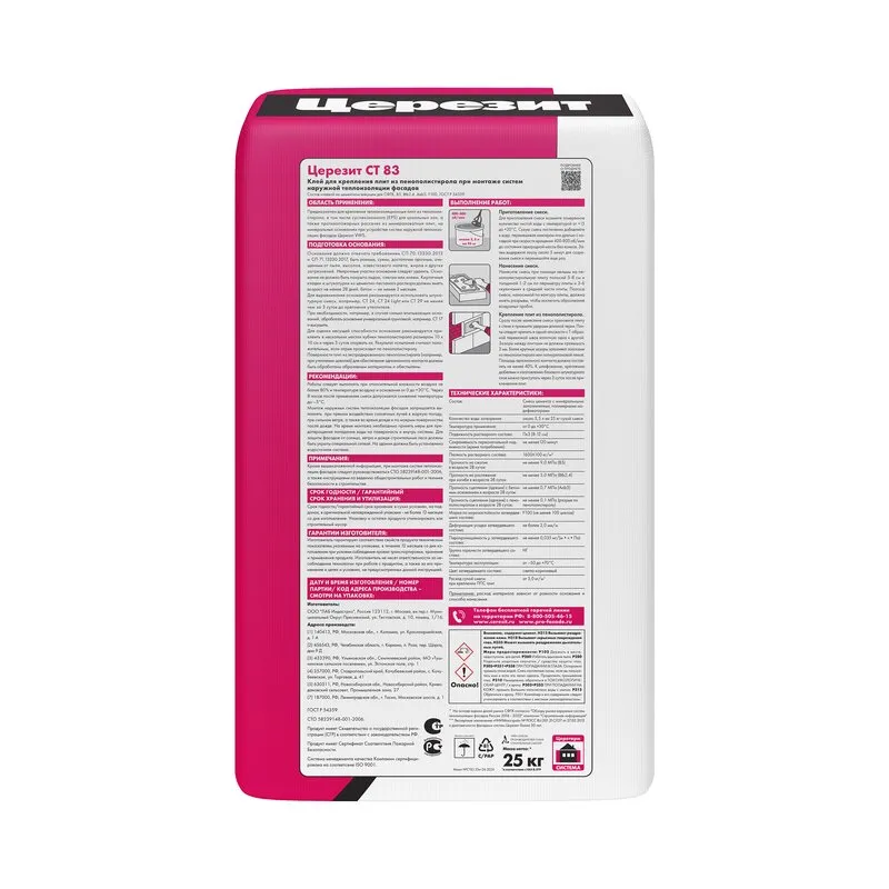 Клеевая смесь Ceresit CT 83 предназначена для профессионального использования и отлично подходит для различных задач в области фасадного утепления: