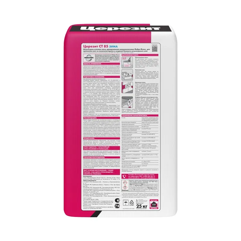Церезит CТ 85 «Зима» Штукатурно-клеевая смесь для пенополистирола для работ в холодных условиях, 25 кг