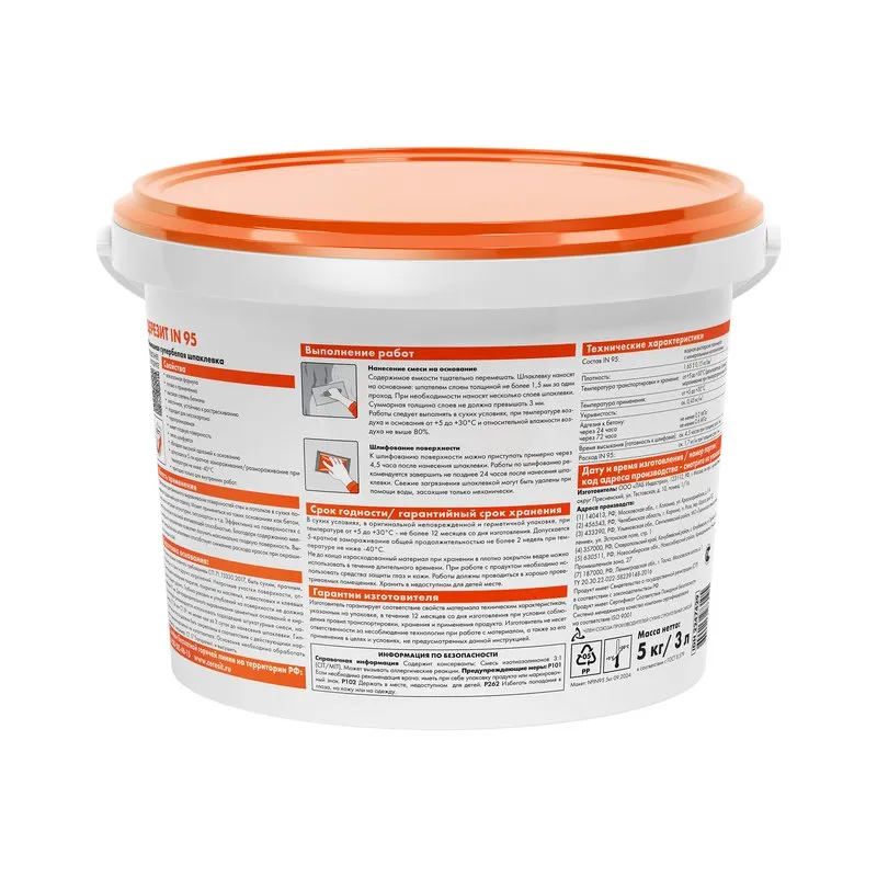 Средний расход шпаклевки Ceresit IN 95 составляет примерно 1,5-1,7 кг на квадратный метр при толщине слоя в 1 мм. Фактический расход может варьироваться в зависимости от рельефа основания и толщины наносимого слоя. Для достижения наилучших результатов рекомендуется нанесение шпаклевки тонким слоем.