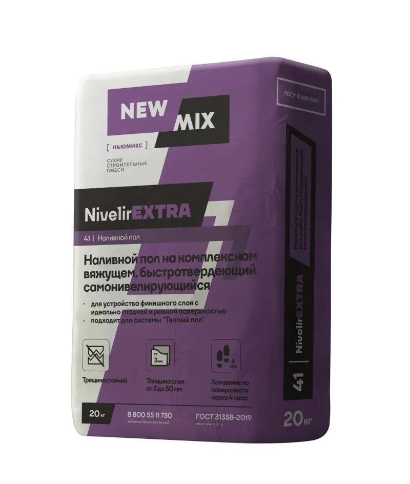 NEW MIX Наливной пол на комплексном вяжущем, быстротвердеющий, самонивелирующийся NIVELIR EXTRA