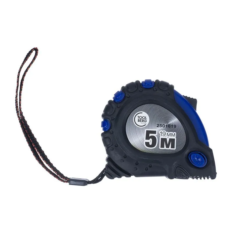 - Многофункциональность: От прецизионных измерений в мебельном деле до масштабных строительных проектов — рулетка TOOLBERG 5мх19мм является универсальным решением для различных задач.