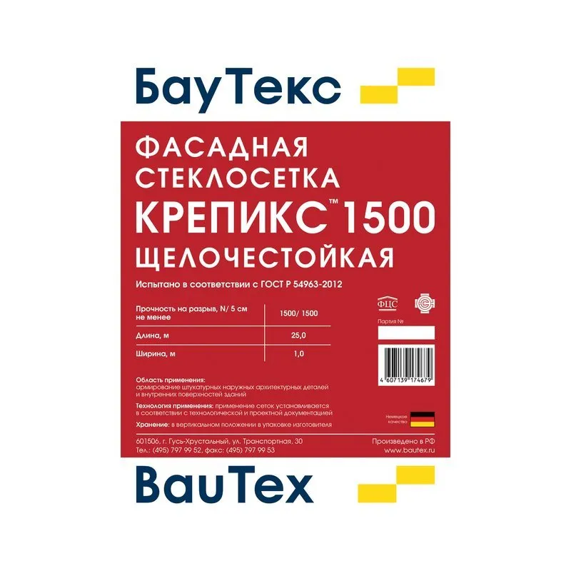 BauTex Сетка фасадная Крепикс 1500/25м2 доступна по цене 1633 рубля.