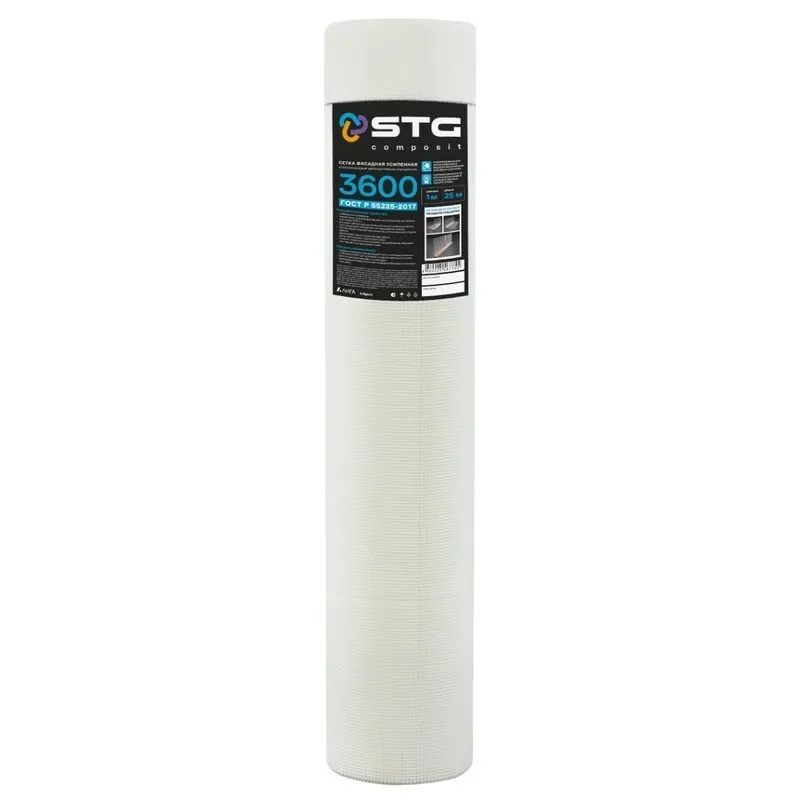 Сетка стеклотканевая фасадная 3600 Stg Composit усиленная панцирная класс А щелочестойкая ГОСТ Р 55225-2017 1 м х 25 м